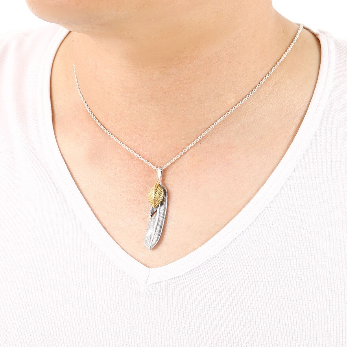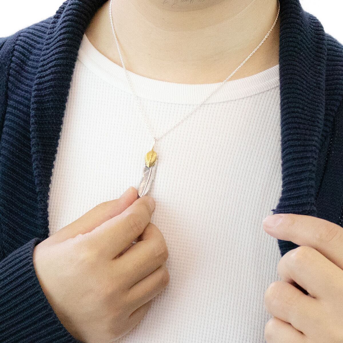 ネックレス メンズ レディース シルバー925 羽 フェザー 翼 燻し加工 インディアン 立体感 鳥 鷹 アンティーク感 あずきチェーン 50cm シンプル おしゃれ かっこいい カジュアル 普段使い 記念日 誕生日