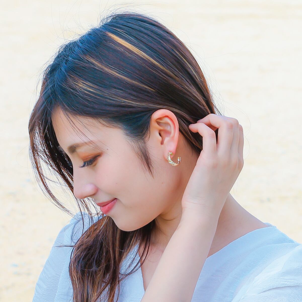 繊細なデザインで美しさを引き立たせるハーフフープピアス。