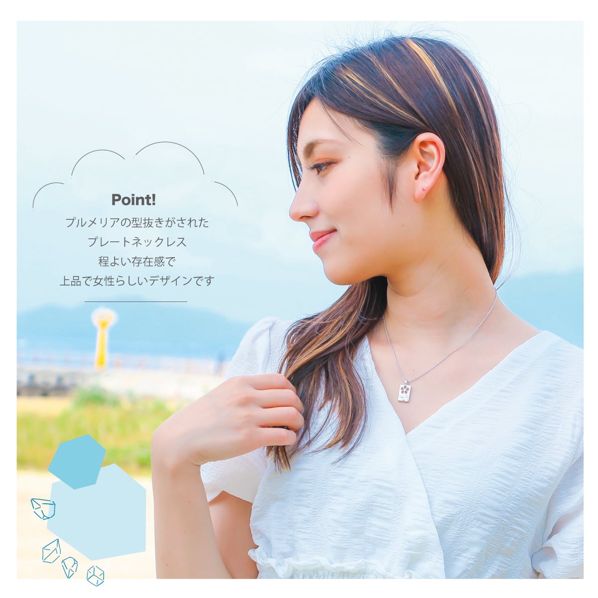 花びらの型抜きがされたプレートのネックレス。