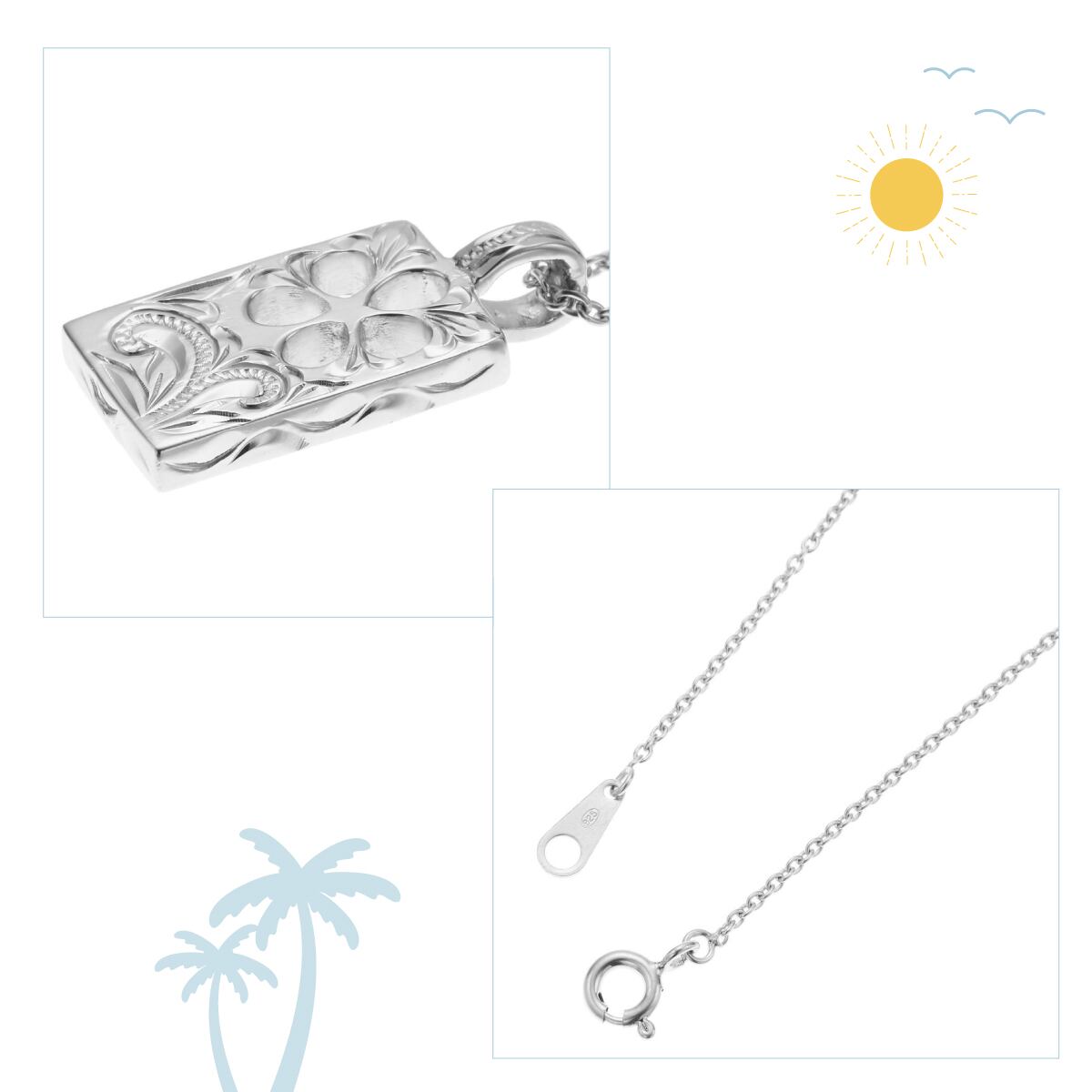 ネックレス レディース ali-pu-p989 シルバー925 ハワイアンジュエリー ハワジュ プレート 型抜き プルメリア 花 スクロール 波 マイレ 植物 オシャレ 上品 かわいい ギフト 送料無料
