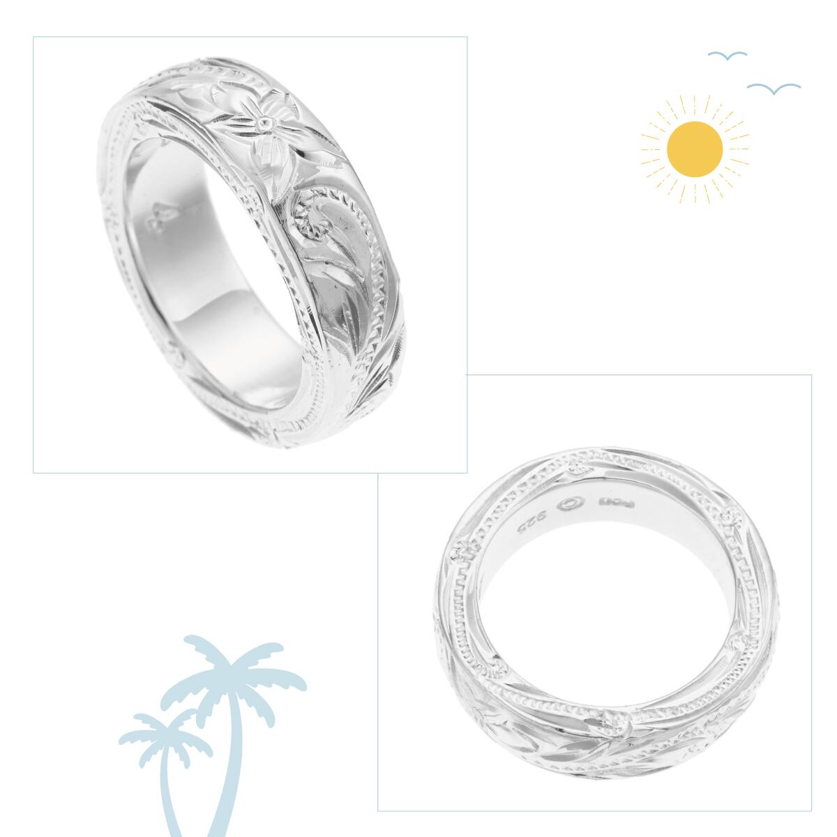 リング レディース メンズ ali-pu-r533 シルバー925 ハワイアンジュエリー プルメリア 花 スクロール ナル 波 マイレ かわいい 大人可愛い 上品 ペア お揃い ギフト 送料無料