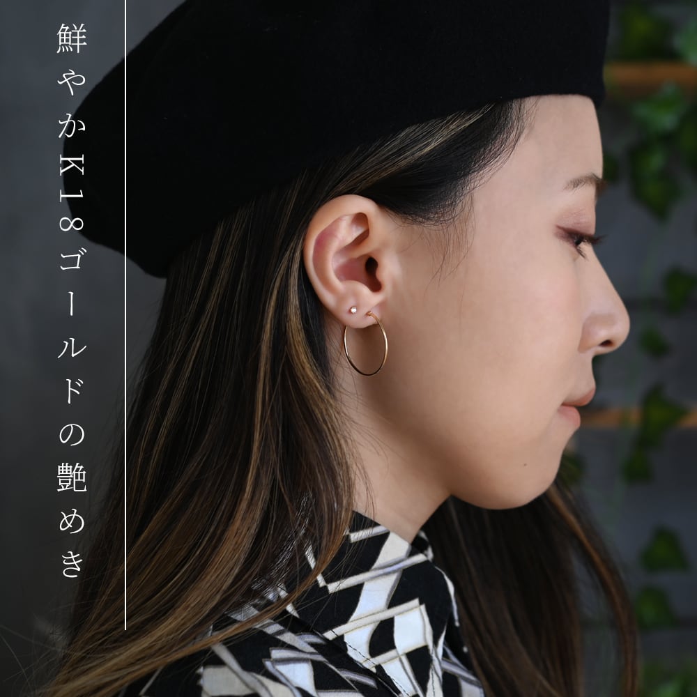K18フープピアス レディース isi-003329-000 K18ゴールド スナップ クロッシング 25mmフープ 18金 軽量 細め 両耳 日本製 お肌に優しい 金属アレルギー対応 シンプル ギフト 送料無料