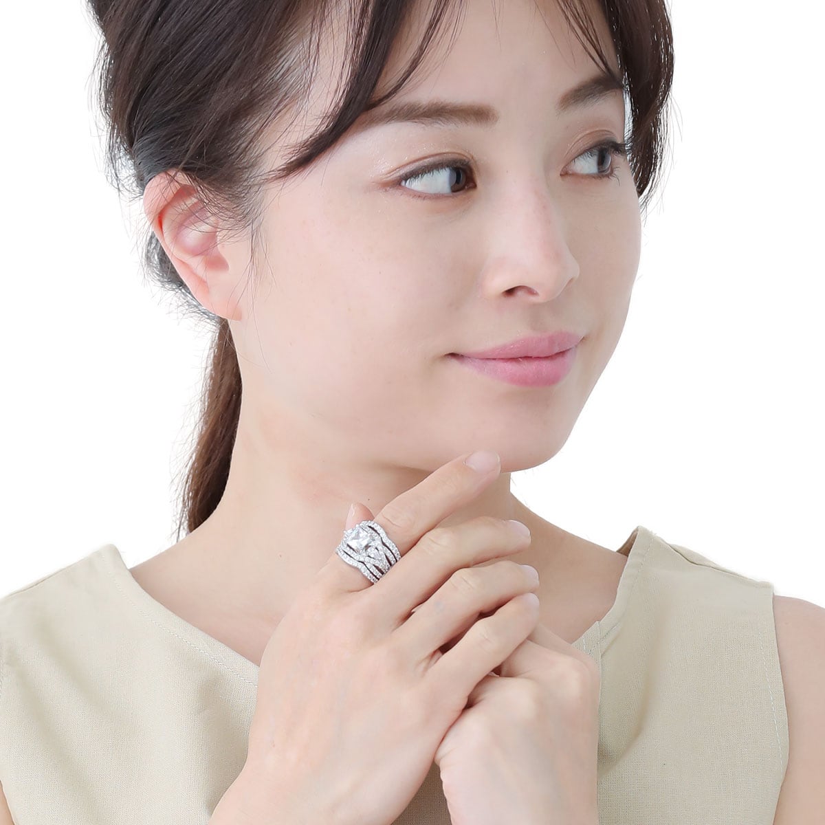 大粒のキュービックジルコニアが輝く、ゴージャスで華やかなリング。