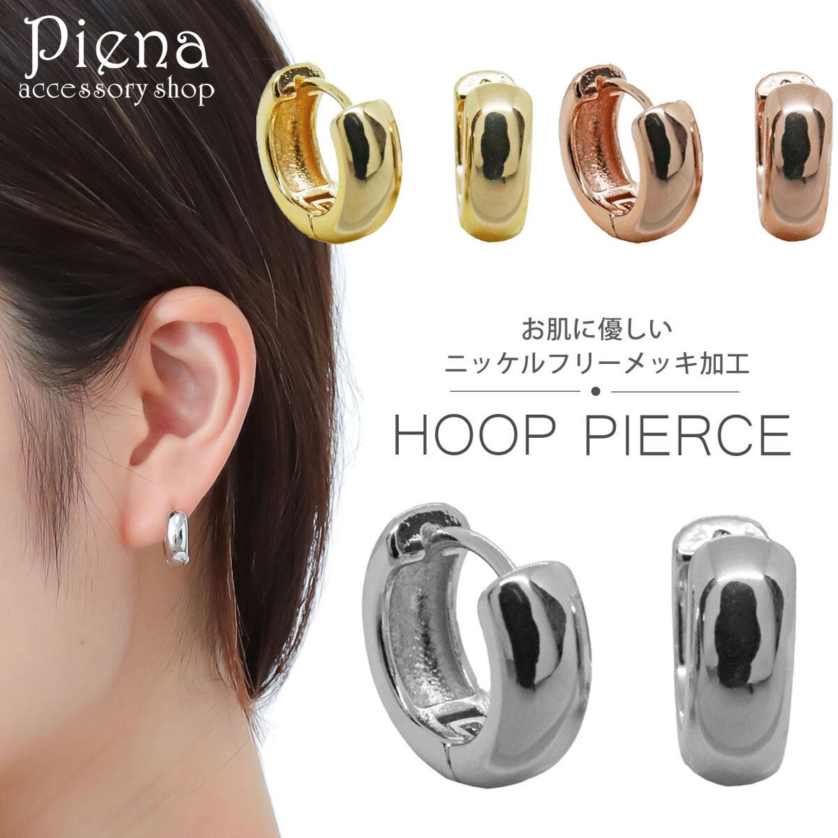 ワンタッチで装着が可能な中折れフープピアスは、