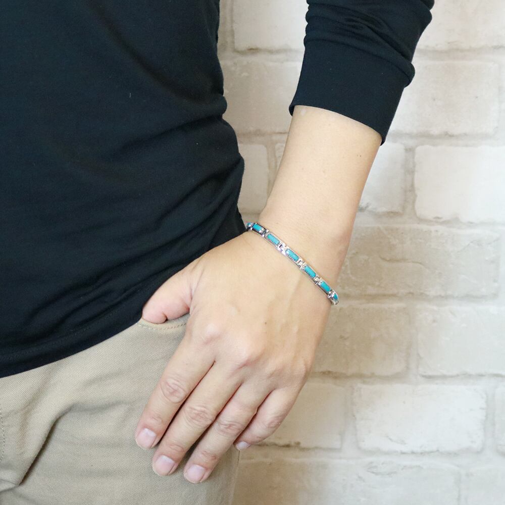 艶やかなシルバー925メタルと色鮮やかなターコイズのブレスレットです。