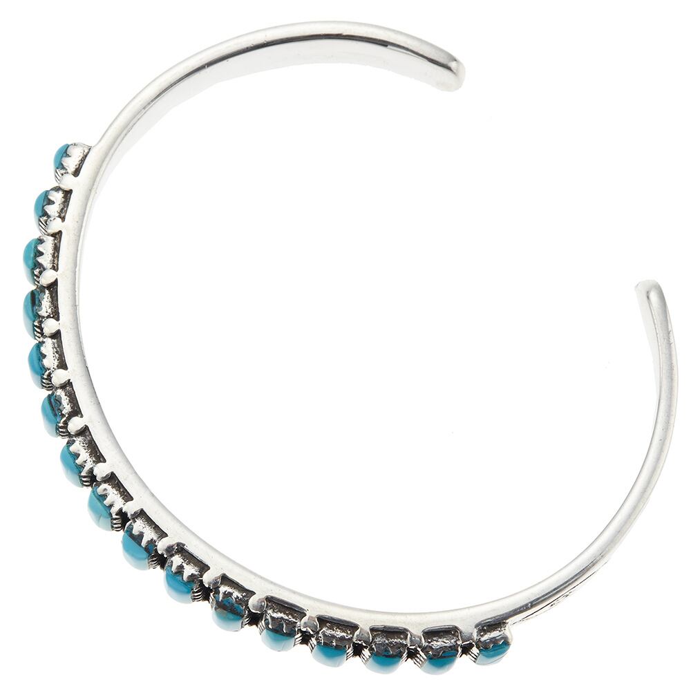 色鮮やかなスクエアターコイズが並ぶシルバー925製の細身バングルです。