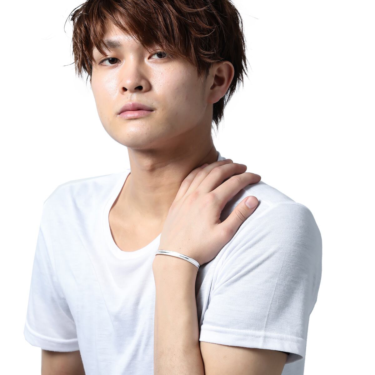 存在感があるバングル型ですが、細めでスタイリッシュな印象に。