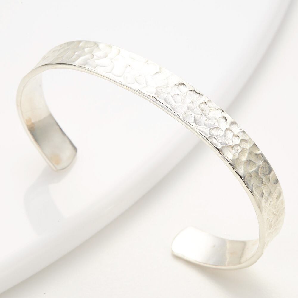 ハンマーで叩いたような模様を施したデザインのメンズバングルです。