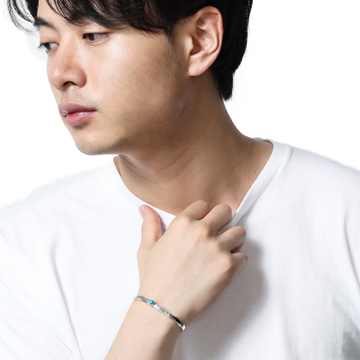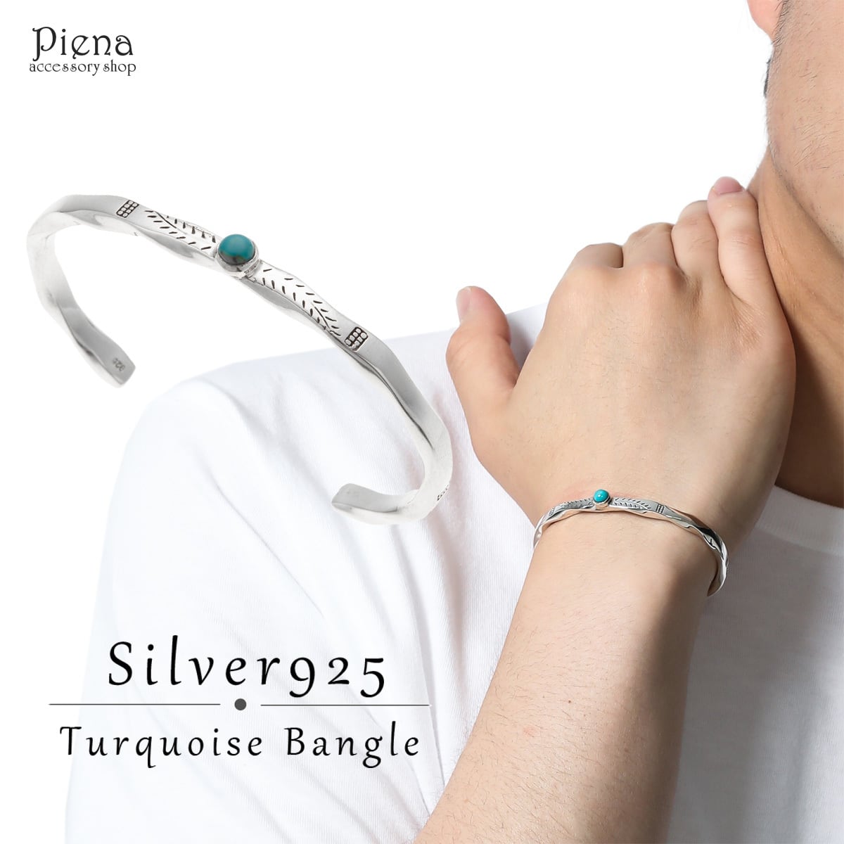 バングル メンズ レディース シルバー925 葉模様 ネリターコイズ 細め 銀製品 トルコ石 彫刻 ネイティブアメリカン インディアン 重ね付けも シンプル おしゃれ 綺麗 上品 繊細 スタイリッシュ カジュアル 普段使い 記念日 誕生日 プレゼント ギフト 送料無料