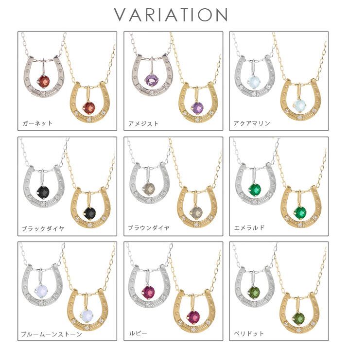 ネックレス レディース wi-64128 me on みぃおん K10 10金 ホースシュー 蹄鉄 誕生石 天然石 幸運のシンボル ラッキーモチーフ アジャスター付 長さ調節可能 専用BOX付 送料無料