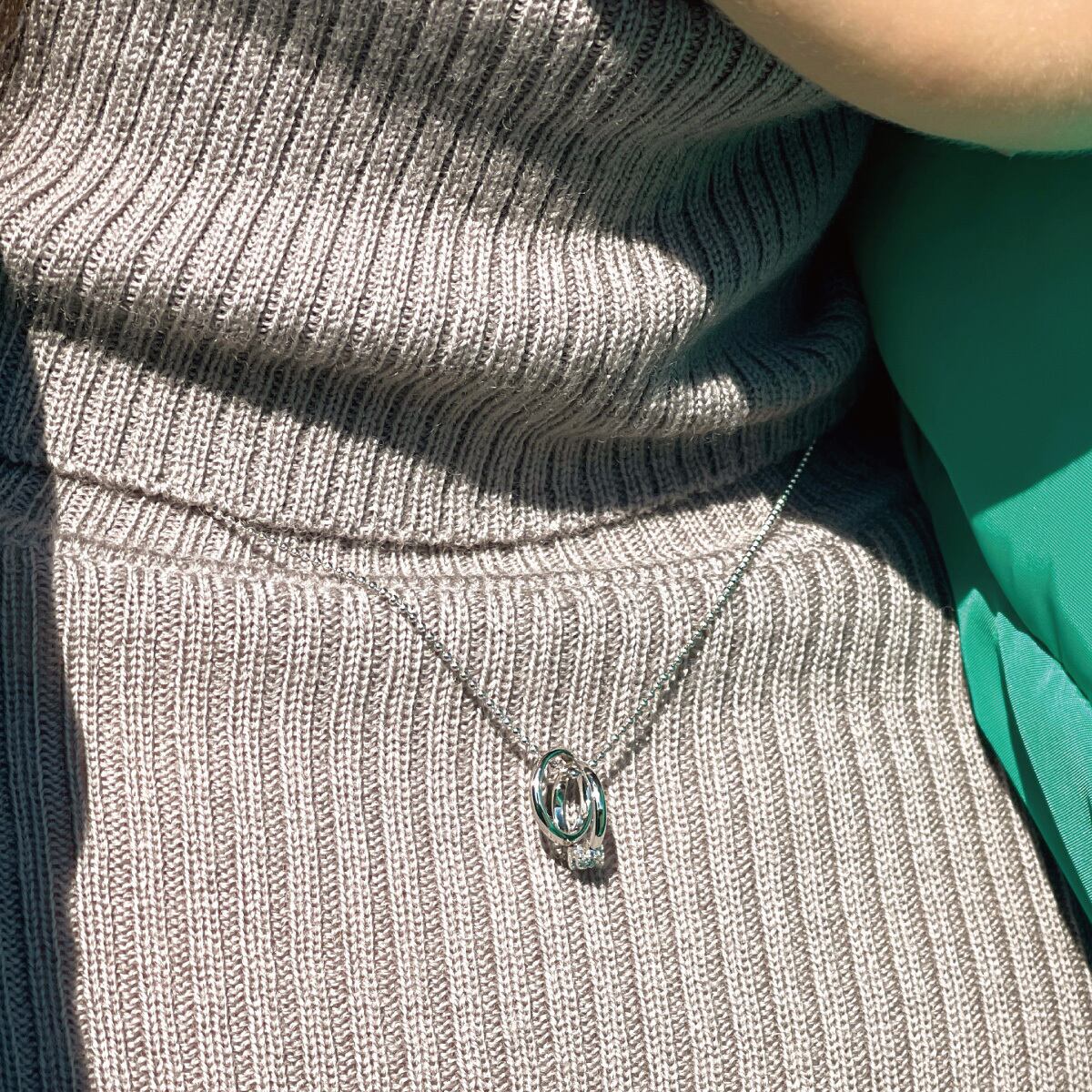 豪華な2連リングとして光を交差させ、誕生石を一層引き立てます。