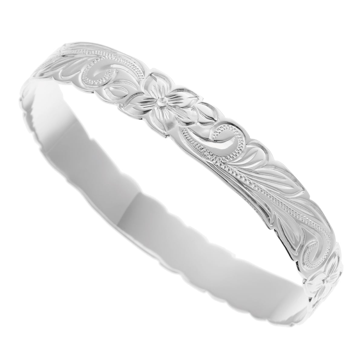 バングル ブレスレット レディース メンズ ali-pu-b237p-12mm シルバー925 ハワイアンジュエリー ハワジュ ナル スクロール 波 プルメリア 花 夏 幅広 ペア お揃い 上品 大人可愛い 恋人 誕生日 記念日 プレゼント ギフト 送料無料