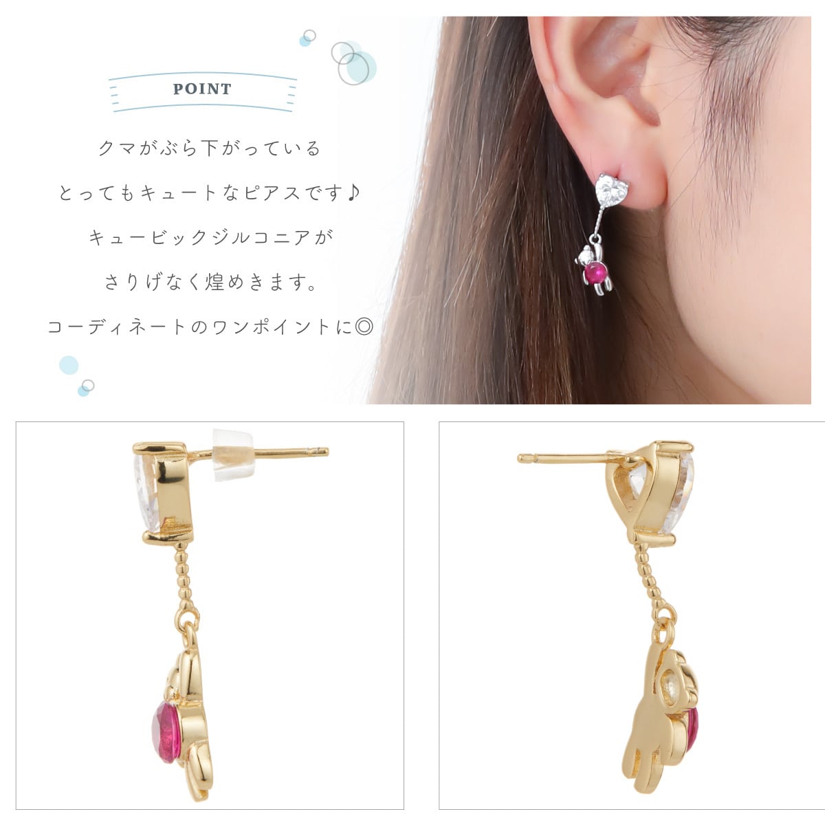 ピアス レディース ali-1967629 シルバー925 キュービックジルコニア クマ テディベア 揺れる キラキラ 上品 かわいい 大人可愛い パーティー 結婚式 記念日 プレゼント ギフト メール便送料無料