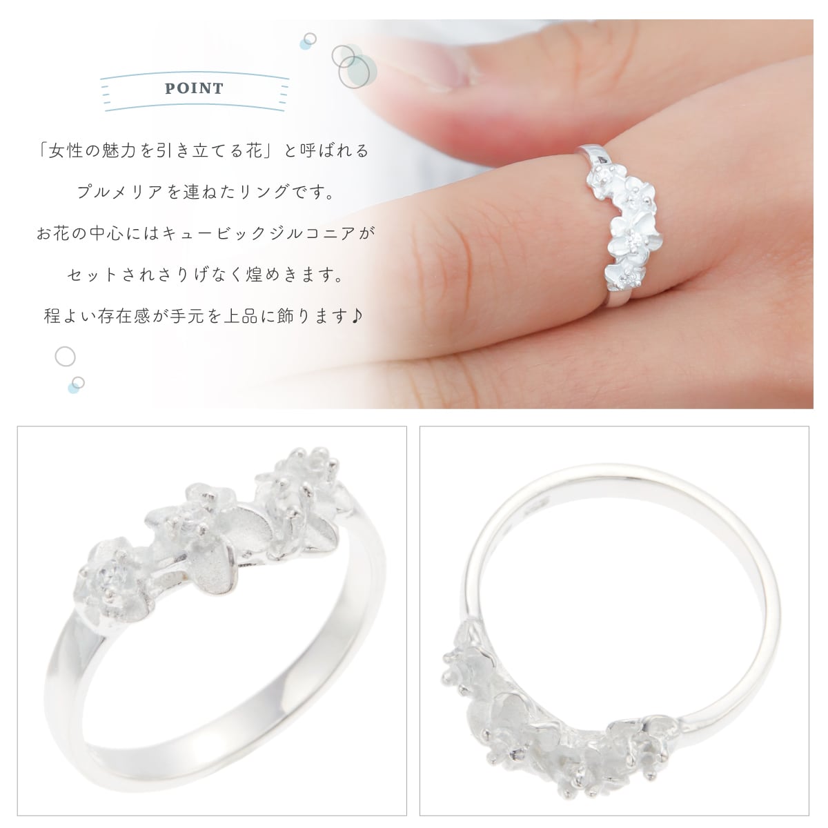 リング レディース ali-pu-r053 シルバー925 キュービックジルコニア ハワイアンジュエリー ハワジュ プルメリア 四連 花 フラワー 繊細 上品 かわいい 大人可愛い パーティー 結婚式 記念日 プレゼント ギフト メール便送料無料