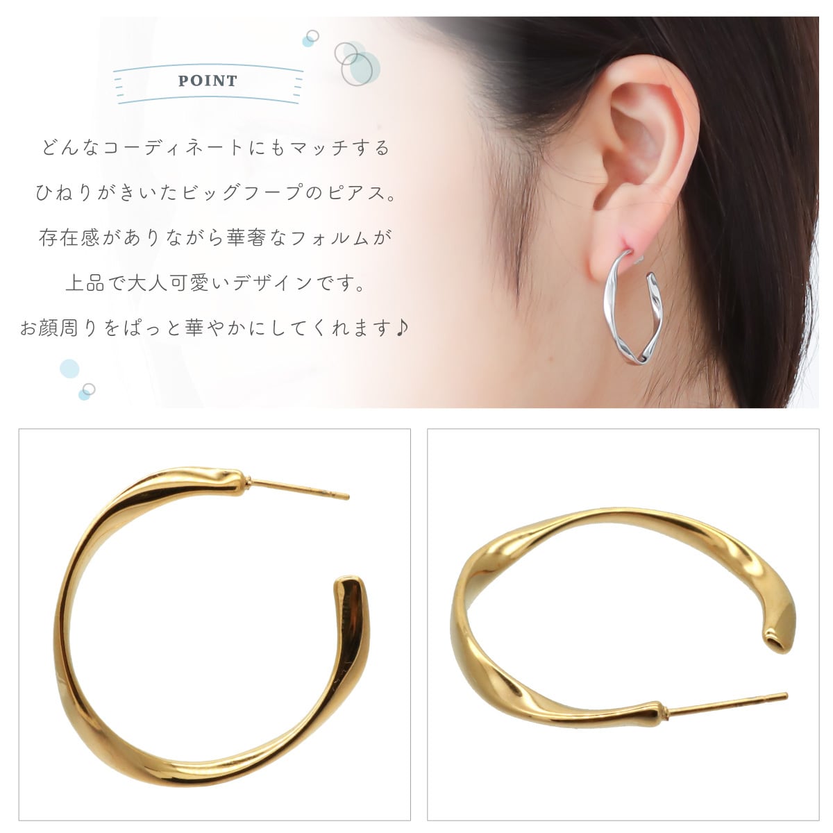 ピアス レディース ali-1975922 サージカルステンレス製 ツイスト ひねり ハーフフープ ビッグフープ 上品 かわいい 大人可愛い カジュアル フォーマル 普段使い 誕生日 記念日 プレゼント ギフト メール便送料無料