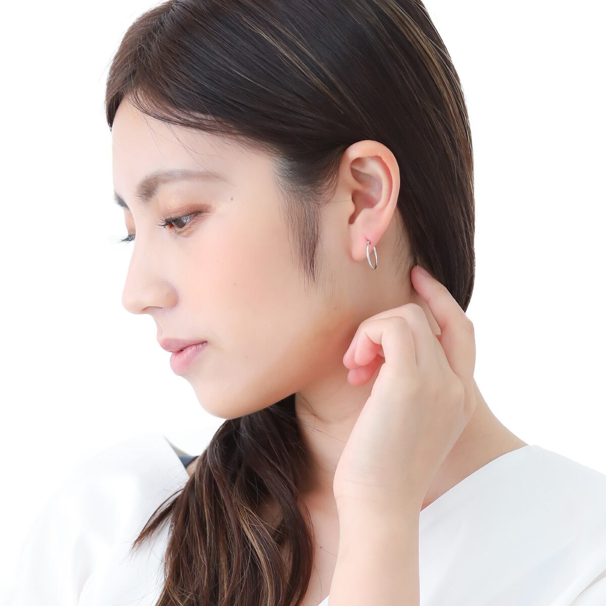 ベーシックで取り入れやすく、程よいボリューム感のフープピアス。
