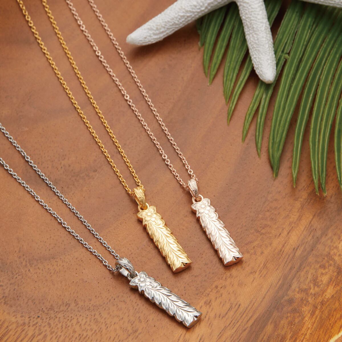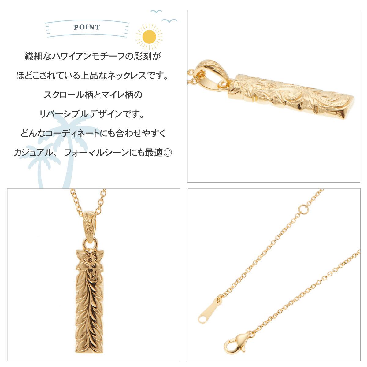 ネックレス レディース メンズ aab-gpss1357 サージカルステンレス316L製 ペンダント ハワイアンジュエリー ハワジュ リバーシブル スティック プレート プルメリア 花 スクロール 波 マイレ 植物 お肌に優しい 低金属アレルギー対応 恋人 ペア 誕生日 記念日 プレゼント ギフト 送料無料