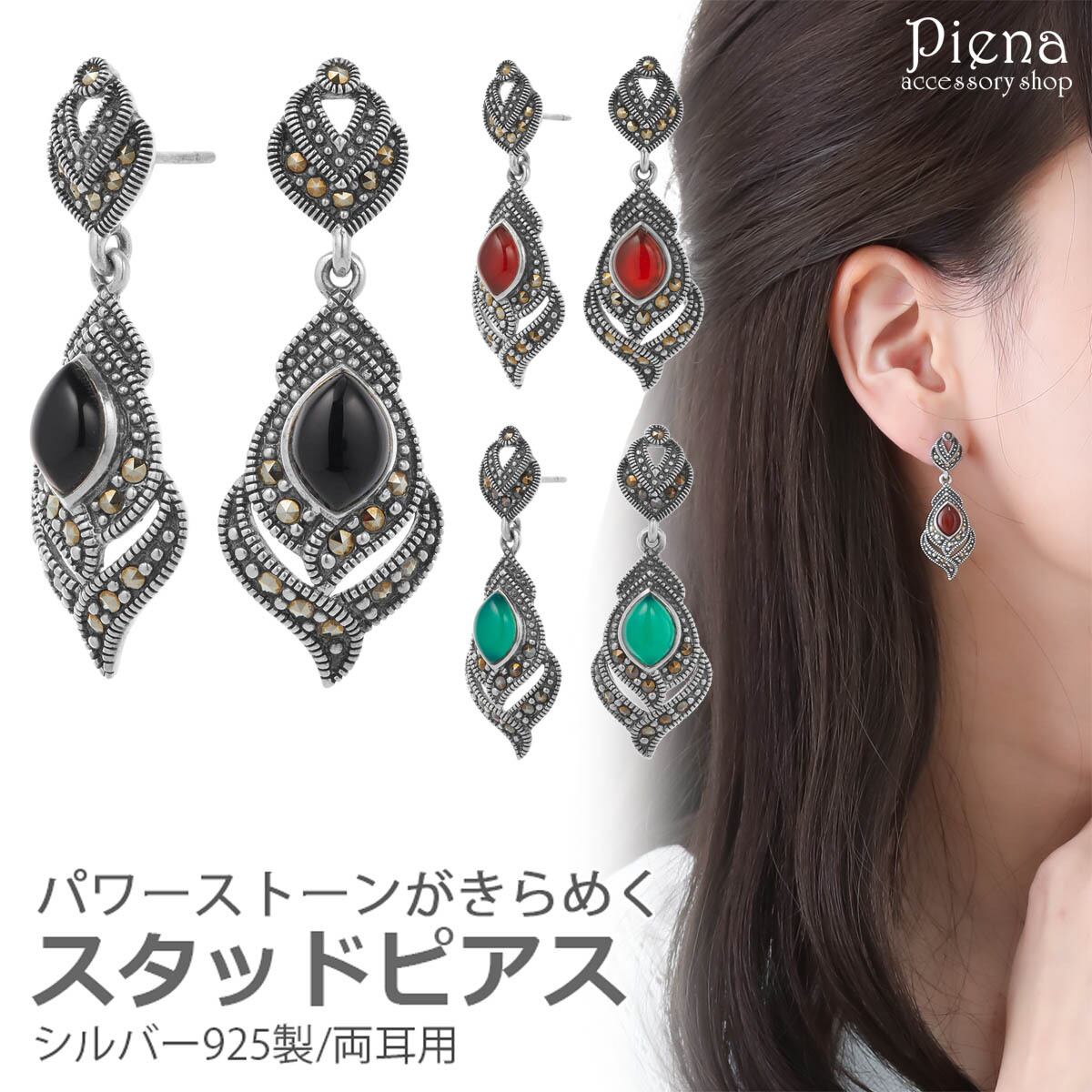 ピアス レディース ali-2010474 シルバー925 オニキス カーネリアン クリソプレーズ 天然石 アンティーク風 パワーストーン お守り 揺れる おしゃれ 上品 綺麗 美しい 可愛い 華やか エレガント ゴージャス パーティー 誕生日 記念日 バースデー プレゼント ギフト 贈り物 送料無料