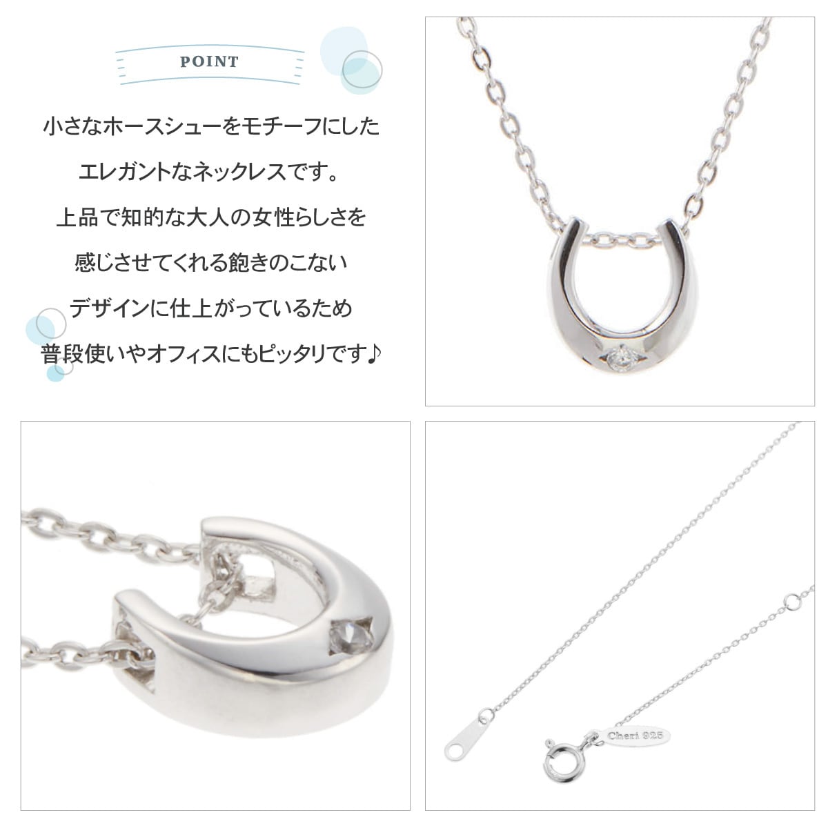 ネックレス レディース ty-sn36-095 シルバー925製 キュービックジルコニア 馬蹄 ホースシュー Cheri close to me 彫刻 刻印 シンプル 1粒 ワンストーン 上品 小ぶり かわいい 大人可愛い キラキラ 彼女 おしゃれ 記念日 誕生日 プレゼント ギフト 送料無料