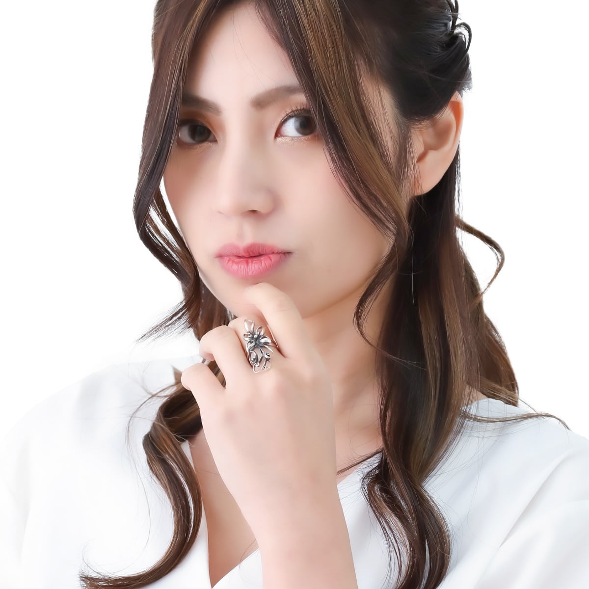 立体感のあるディテールが華やかな存在感を放ち、指先を華奢な印象に見せてくれます♪