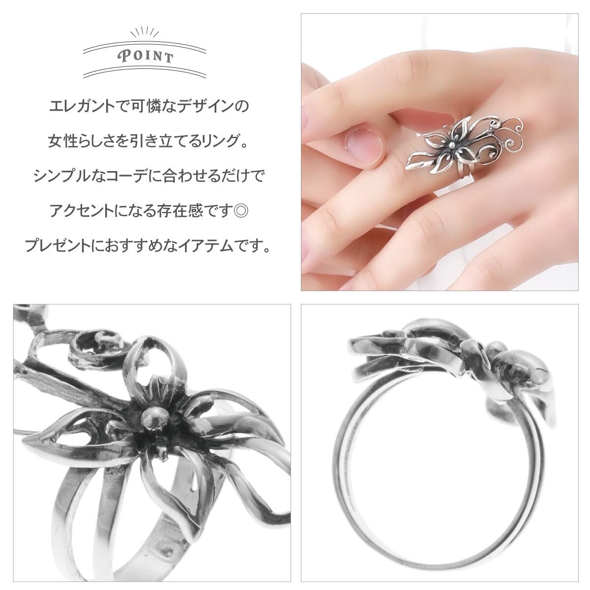リング レディース tr-1-2375 シルバー925 花 フラワー ツタ 大ぶり インパクト ボリューム 抜け感 ゴージャス かわいい 大人可愛い カジュアル パーティー 誕生日 記念日 プレゼント ギフト メール便送料無料