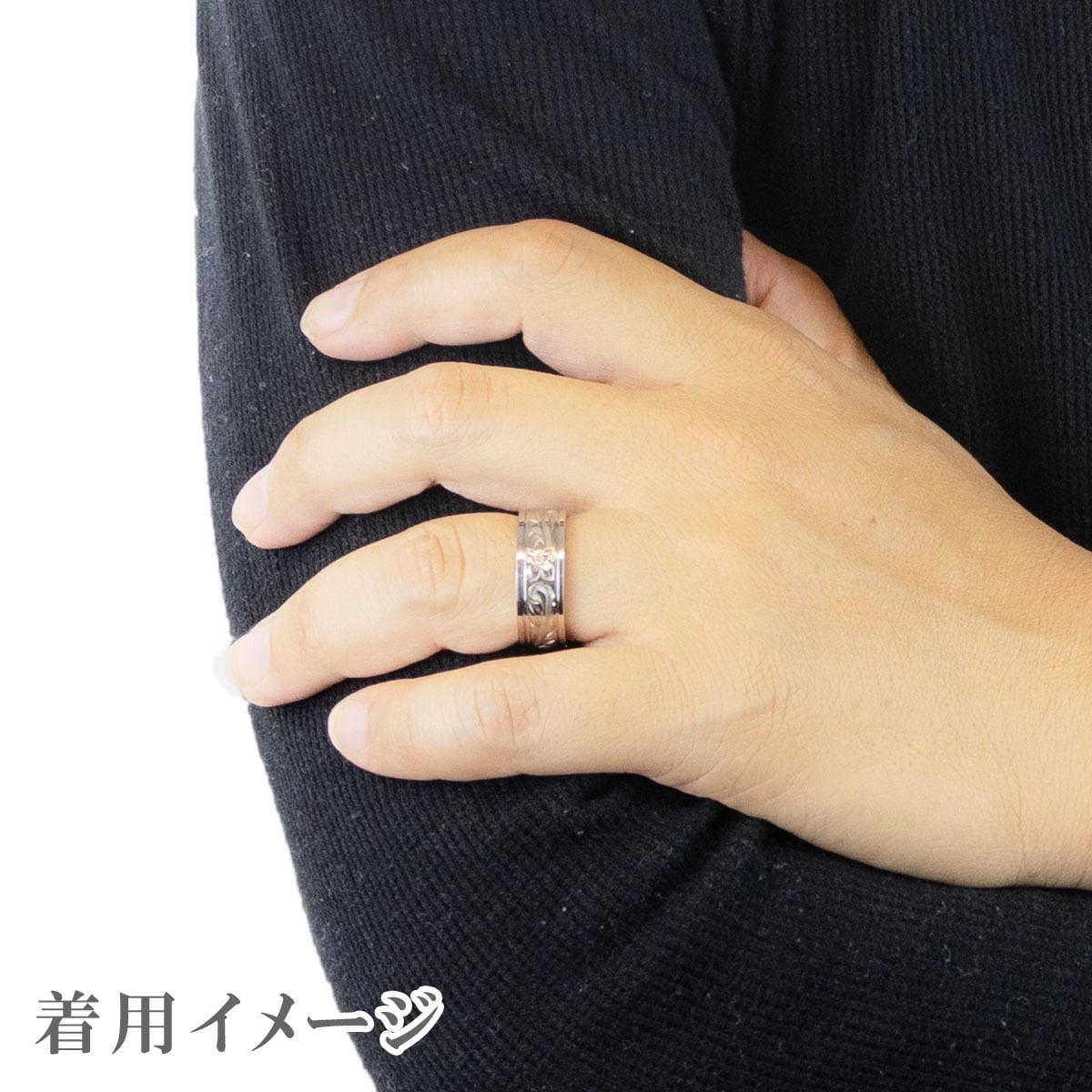施されている男女で使えるデザインリングです。