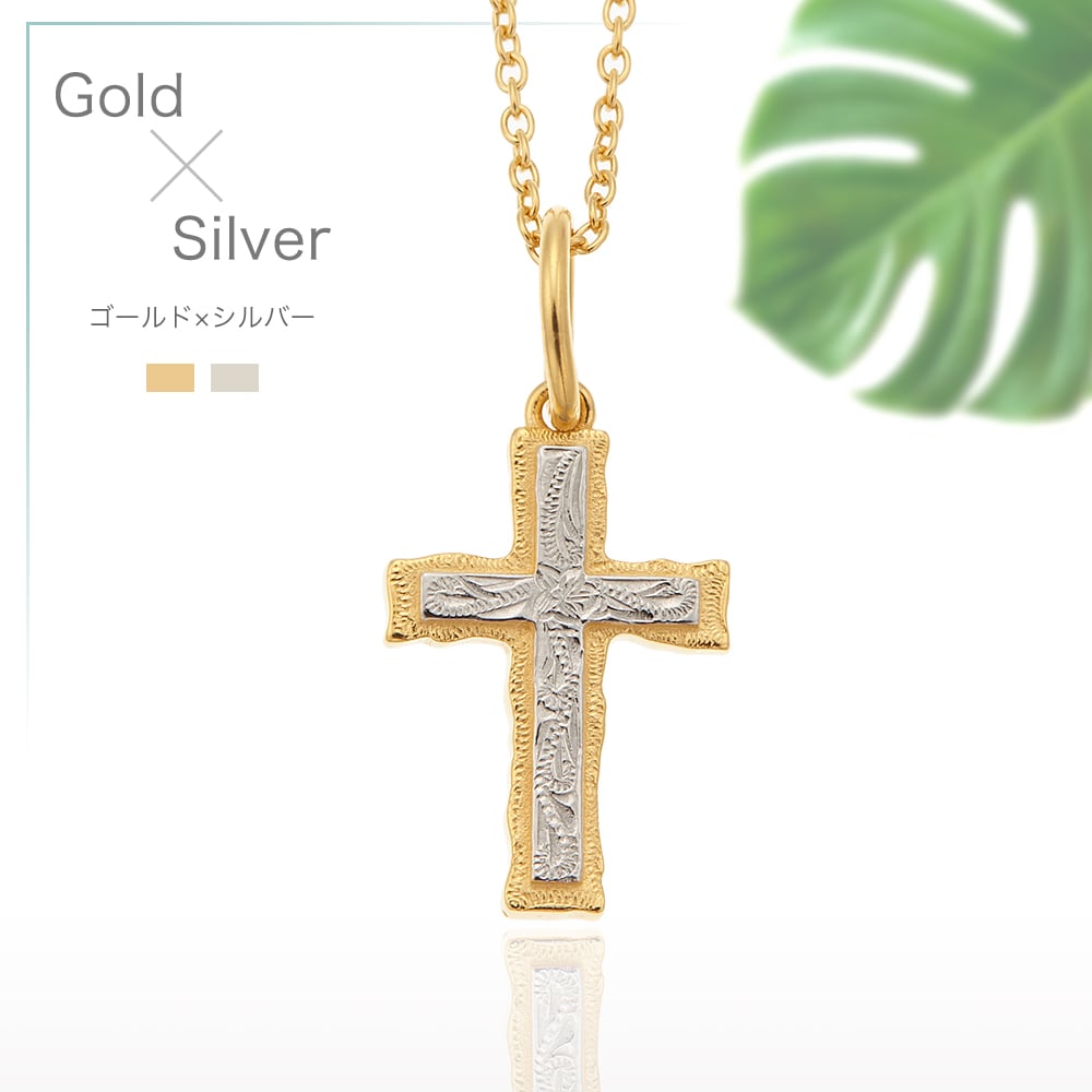 ネックレス ハワイアンジュエリー レディース aab-gpss1104gpg ダブルクロス サージカルステンレス IPコーティング 十字架 プルメリア 波 スクロール リーグル ギフト あす楽