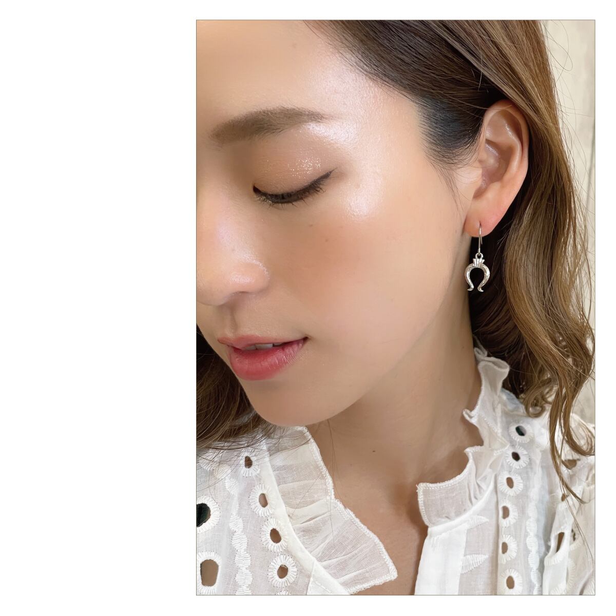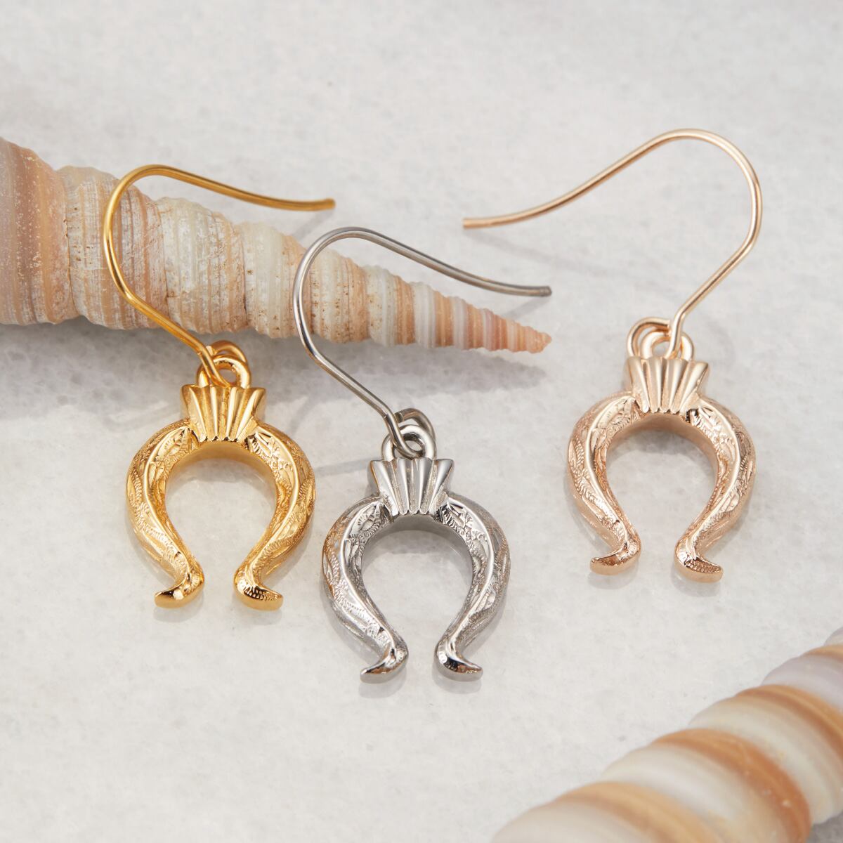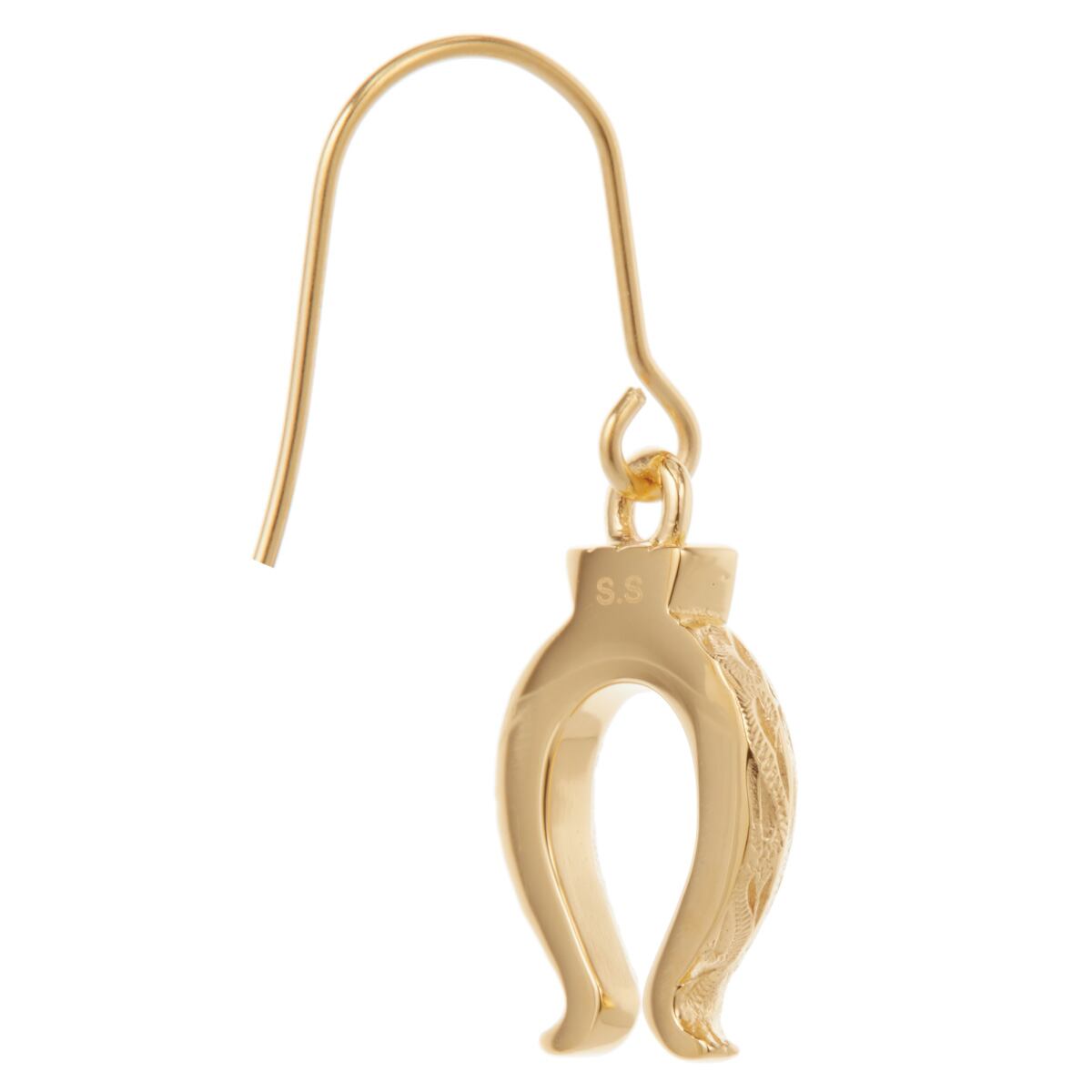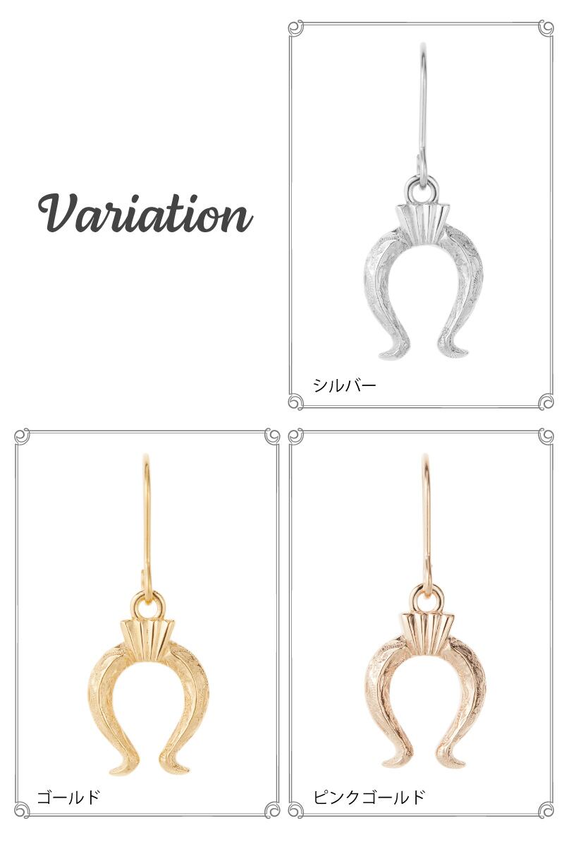 繊細なハワイアン柄がほどこされた馬蹄モチーフのフックピアス。