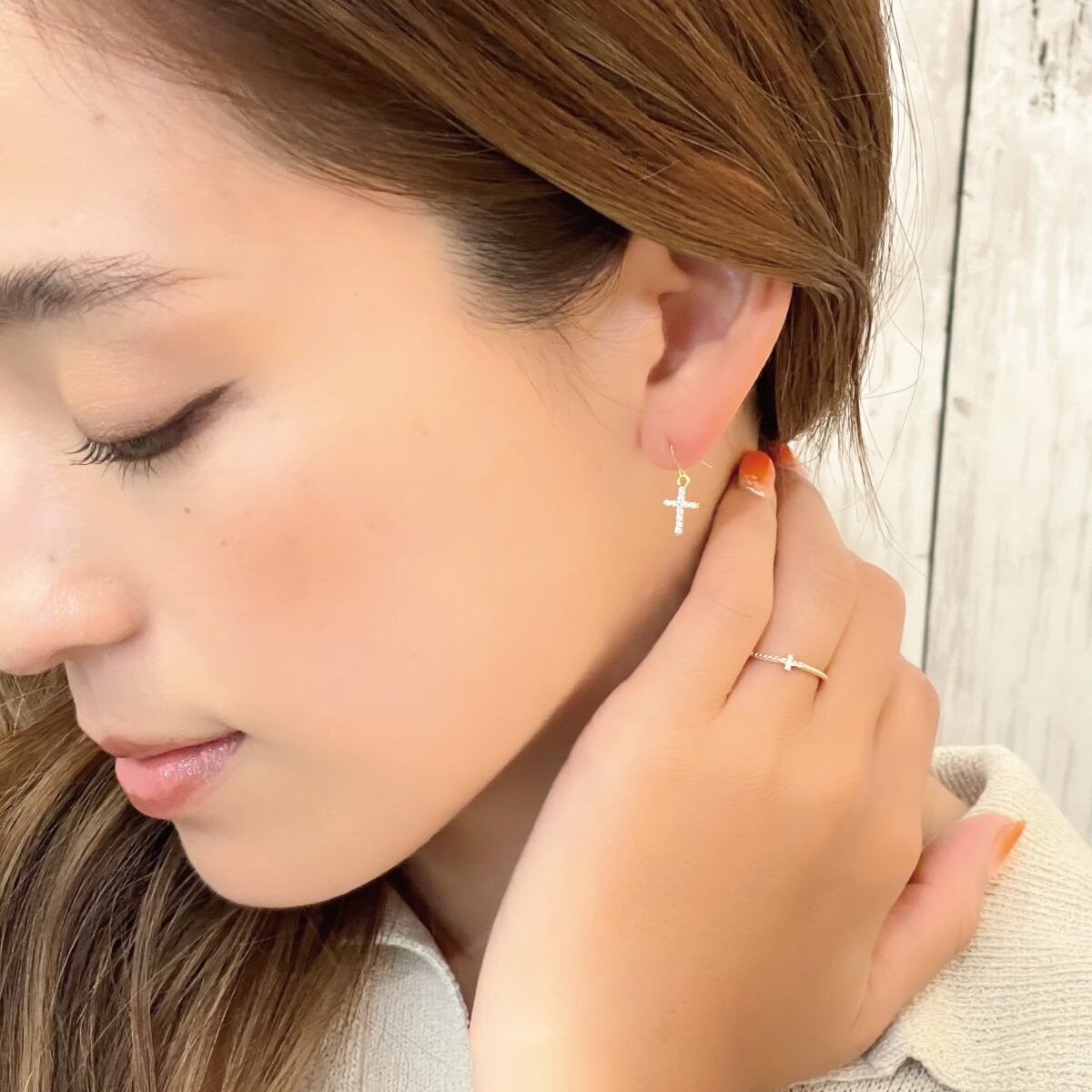 よく見るとクロスというさりげないモチーフサイズが可愛いキュートな細身リング。