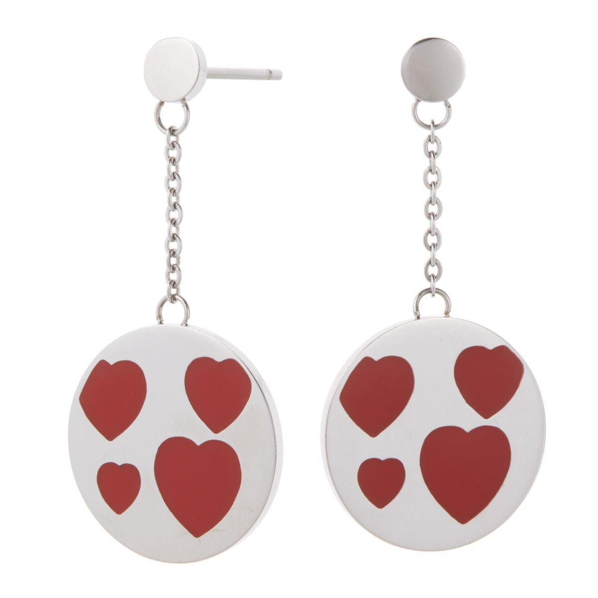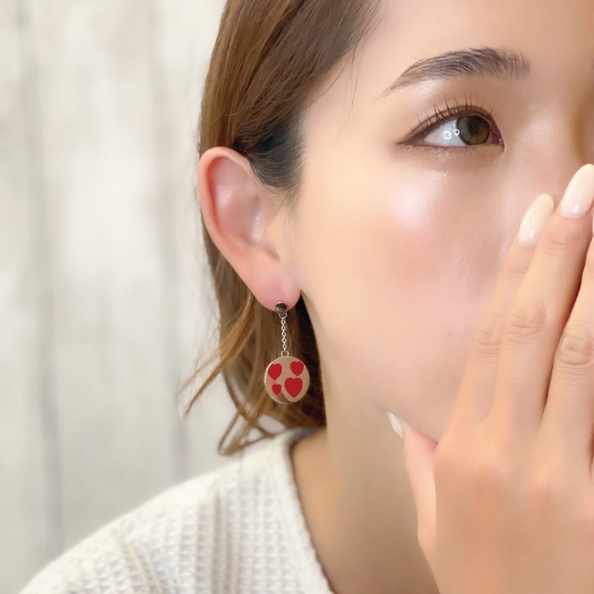 赤いハート模様がほどこされたキュートなスタッドピアス。