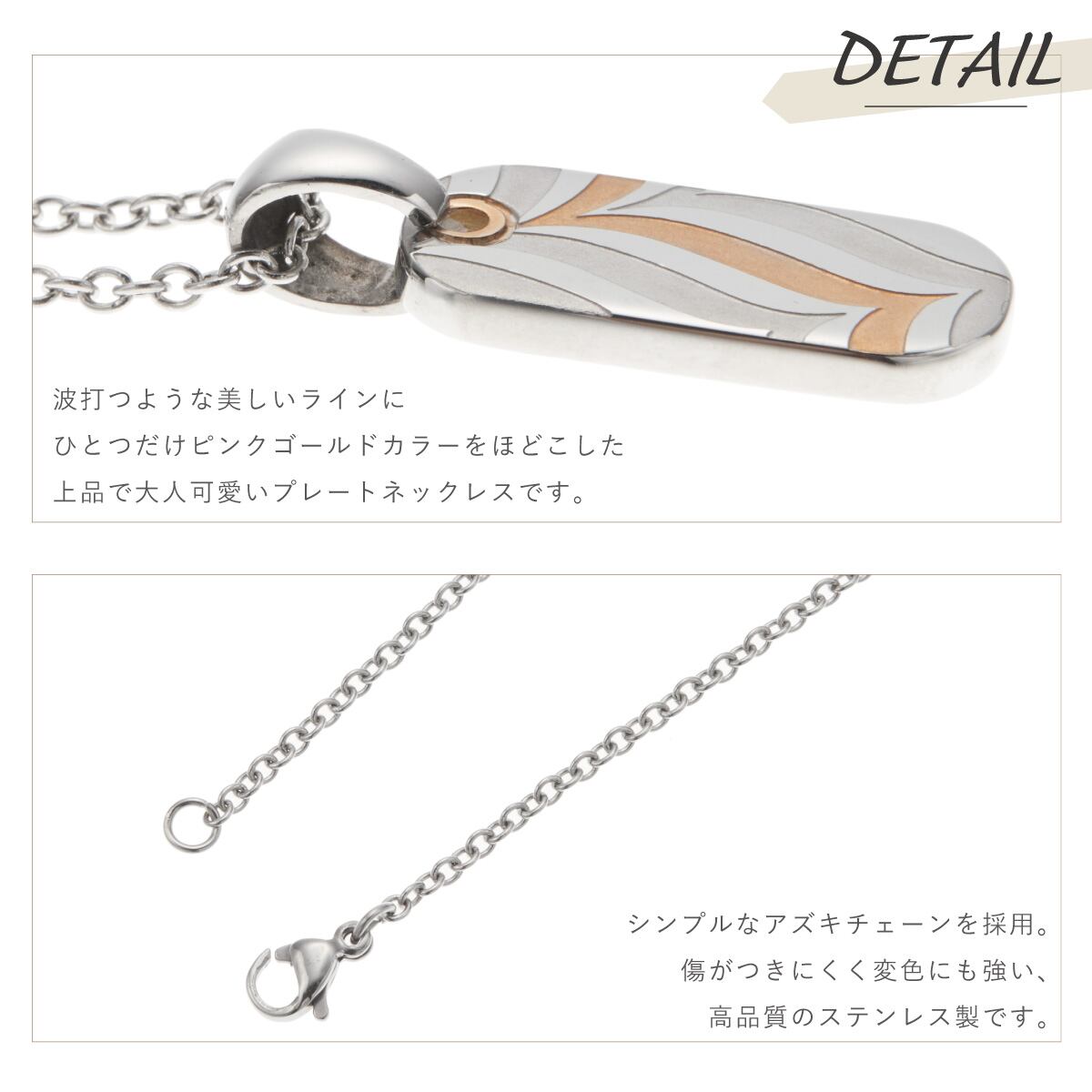 ネックレス aabsal-inp66 レディース サージカルステンレス316L製 プレート 楕円 彫り模様 シルバー×ピンクゴールド 金属アレルギー対応 上品 かわいい メール便送料無料