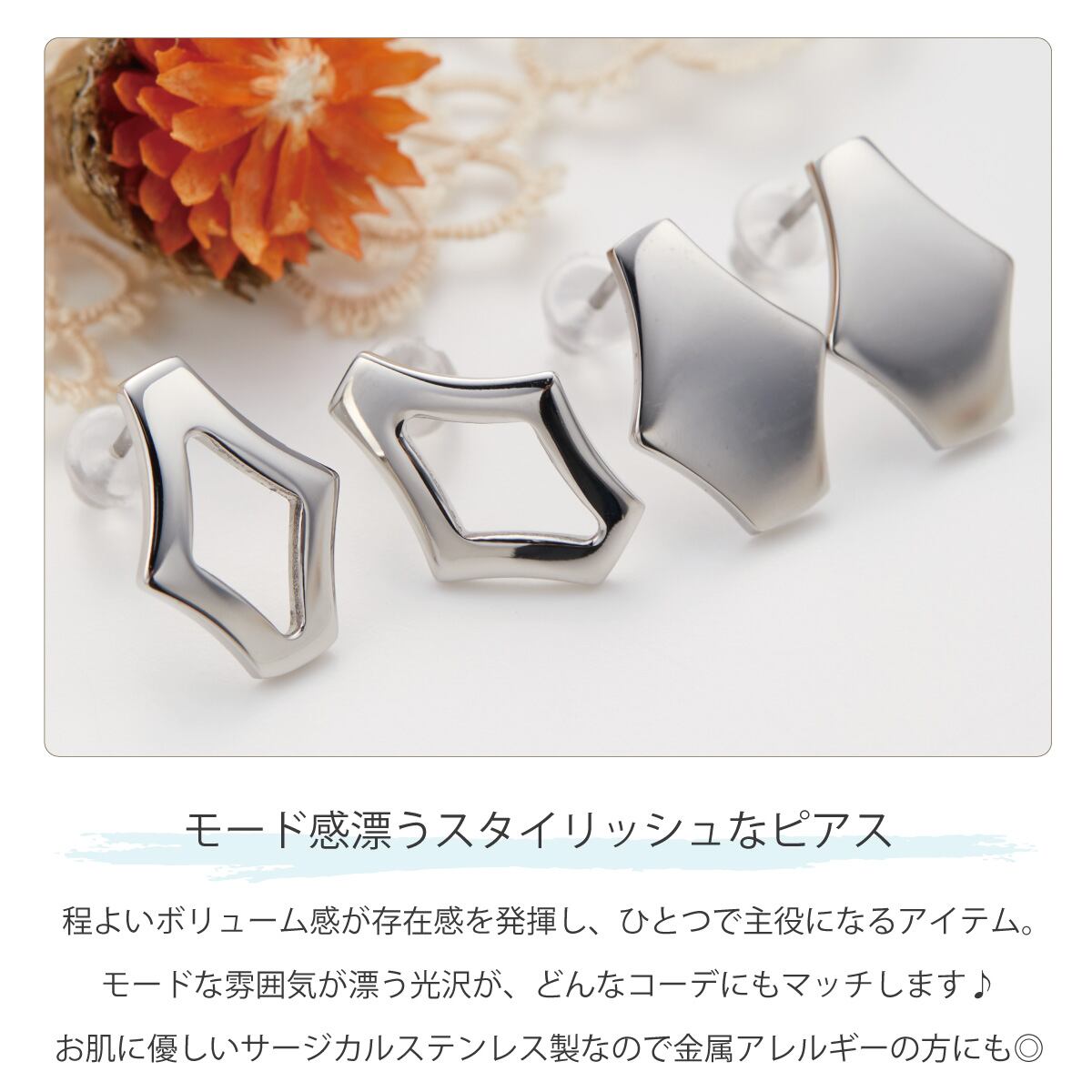 ピアス レディース aabsal-ess168-169 サージカルステンレス製 ダイヤモチーフ ひし形 中抜き メタル 抜け感 お肌に優しい 金属アレルギー対応 上品 かわいい メール便送料無料