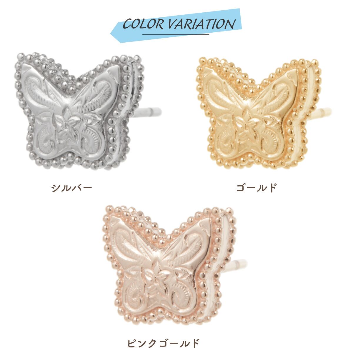 ピアス レディース aab-gess394 サージカルステンレス316L 片耳用 1個売り ハワイアンジュエリー バタフライ 蝶 プルメリア 花 ミル打ち スクロール 金属アレルギー対応 メール便送料無料