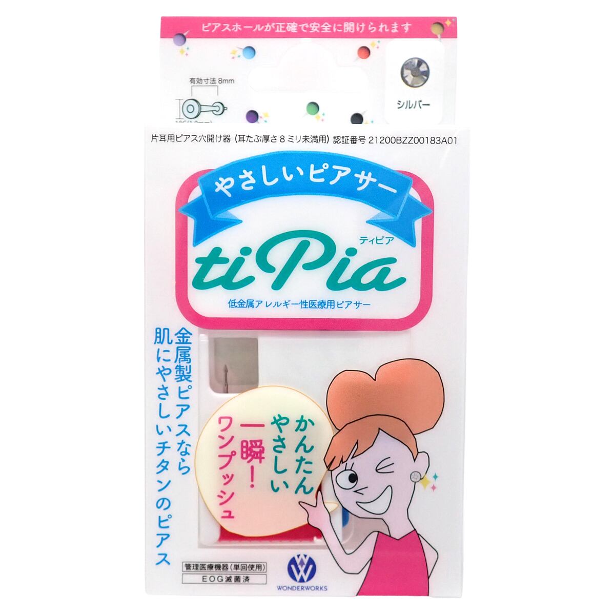 ピアッサー 両耳用 チタン製 金属アレルギー対応 医療用 ファーストピアス 誕生石12種類 ピアッシング固定機能付き ティピア 2個セット はじめて 福耳 メール便 送料無料 ピアス 開ける 春夏秋冬 大人気 18g あす楽