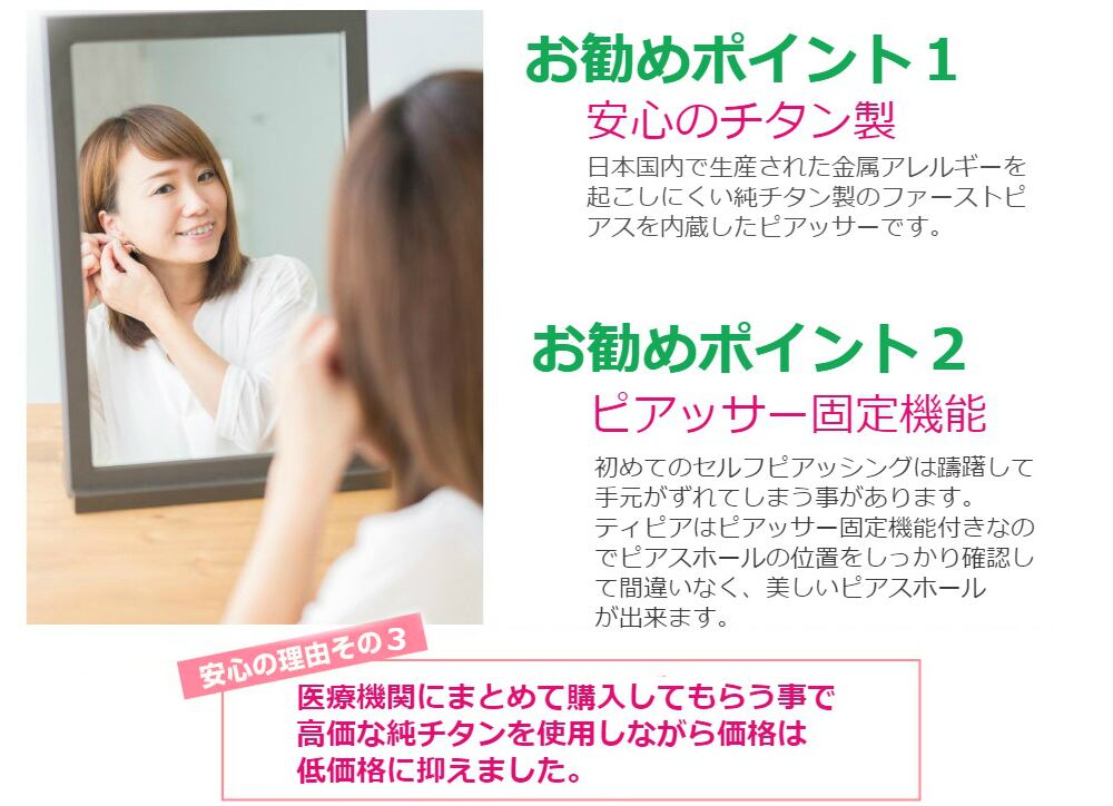 ピアスをあけるなら純チタン製のティピア。