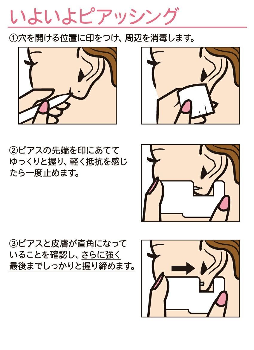 ファーストピアスは本体に内蔵されていますので、ピアスホールを開けるのと同時にピアスが装着されます。