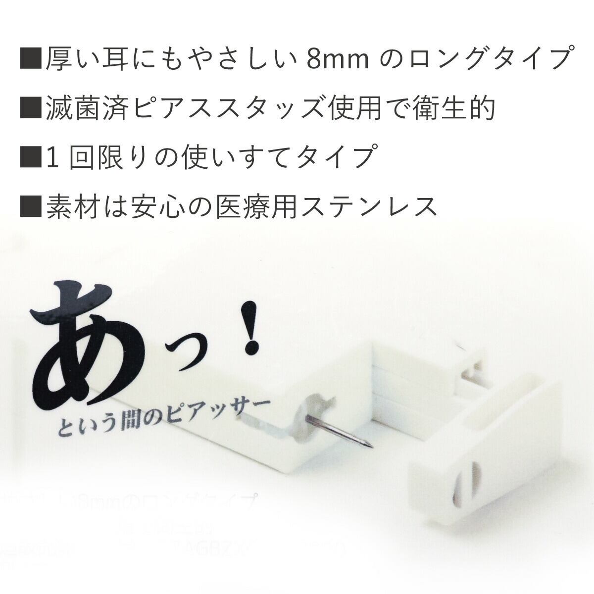 針ホルダーが瞬時的に飛び出て、容易に耳たぶにピアスホールを開けることができます。