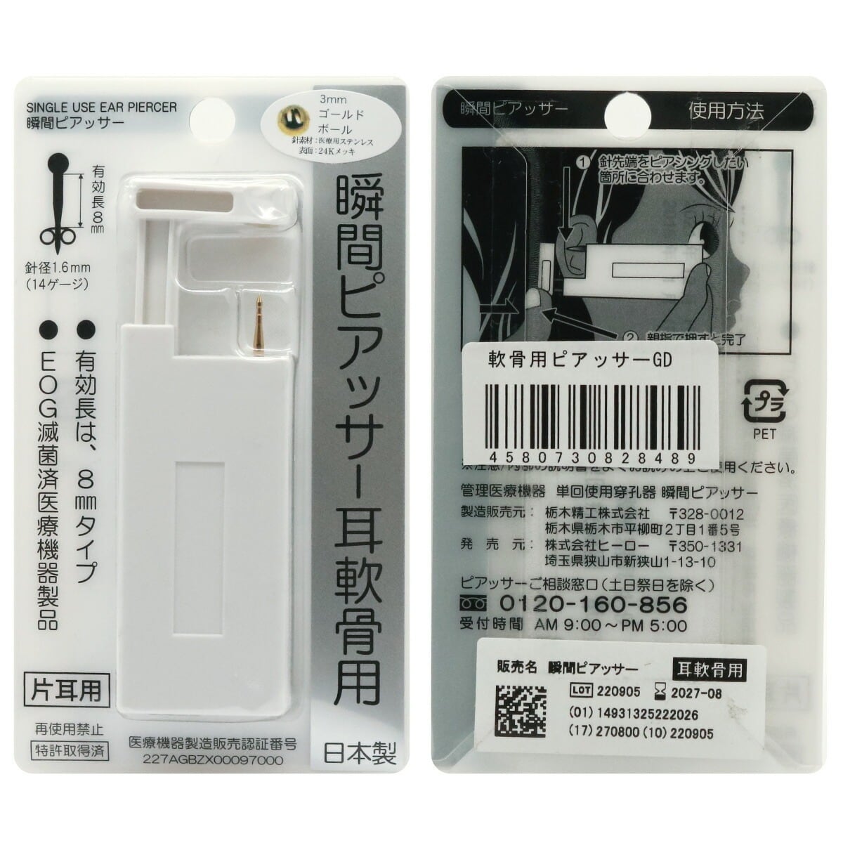 滅菌済ピアス穿孔器 セーフティーピアッサー