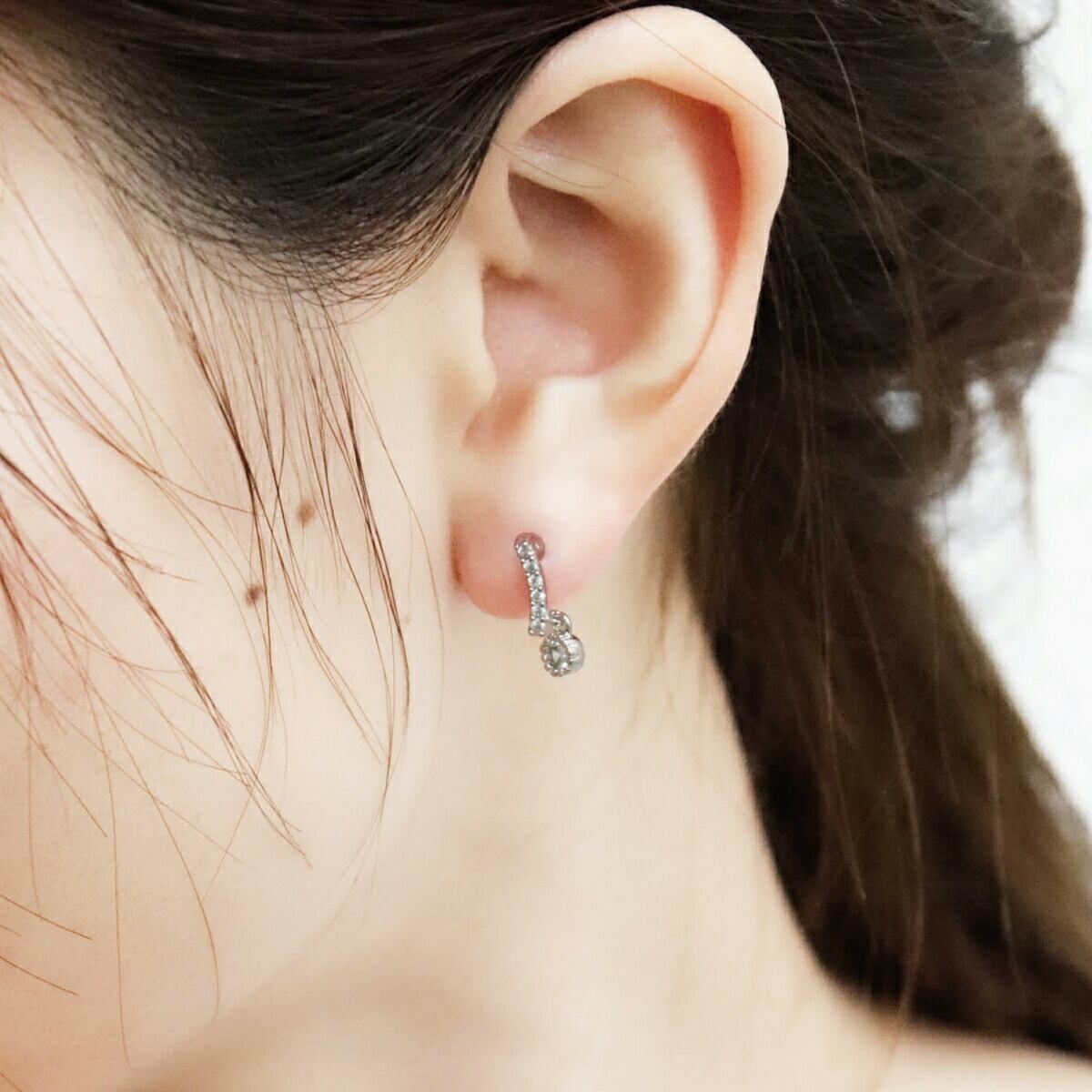 ピアスにセットされたキュービックジルコニアは動くたびにキラキラと輝きをはなち、その煌めきがどんな装いにも上品なアクセントを加えてくれます。