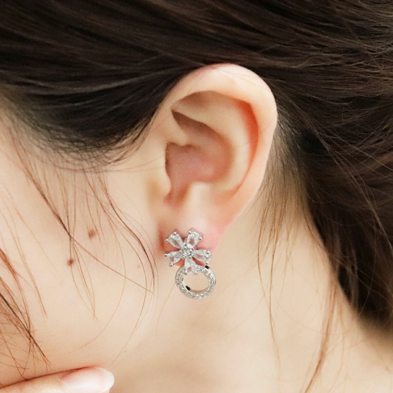 花と輪っかの組み合わせが可愛らしいピアスです。