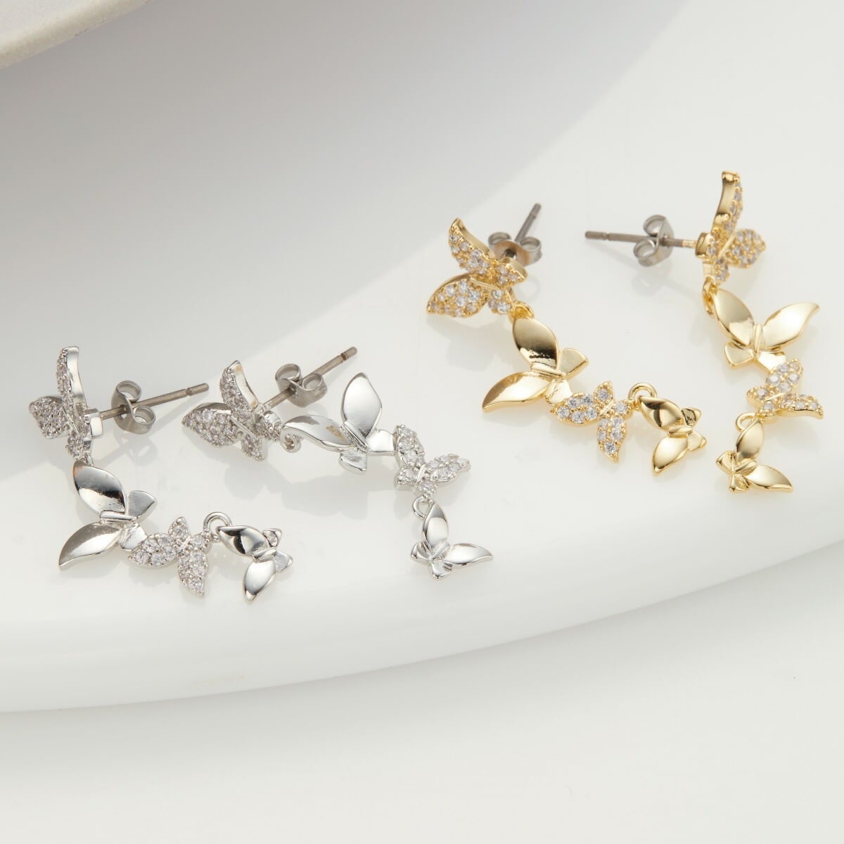 ピアス レディース チタン製ポスト 両耳用 日本製 キュービックジルコニア 蝶 バタフライ 揺れる ニッケルフリー お肌に優しい 金属アレルギー対応 金アレ 上品 かわいい オシャレ 誕生日 記念日 プレゼント ギフト メール便送料無料