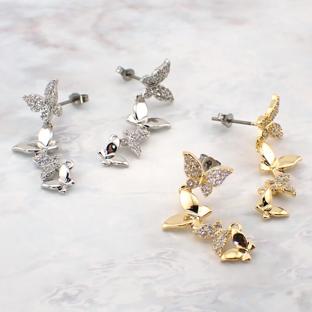 耳元で小さな蝶がゆらゆらと揺れる大人可愛いピアスです。