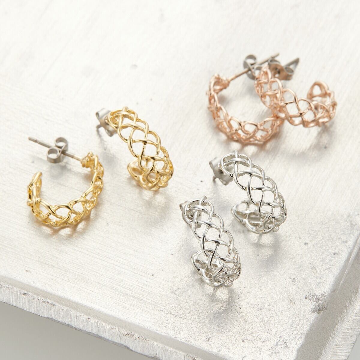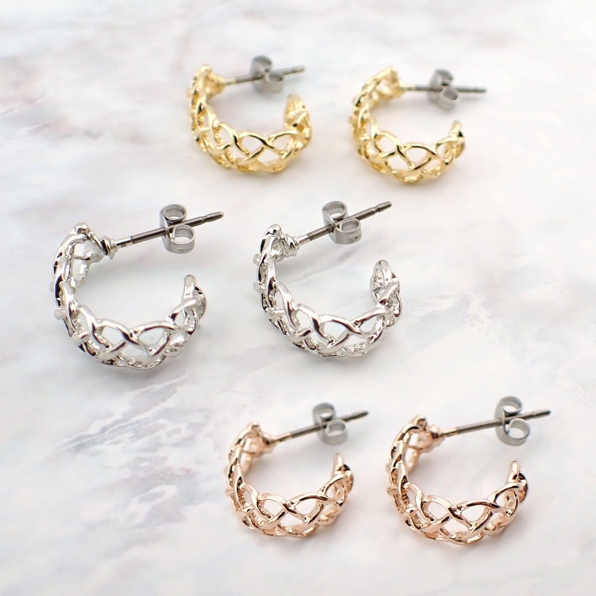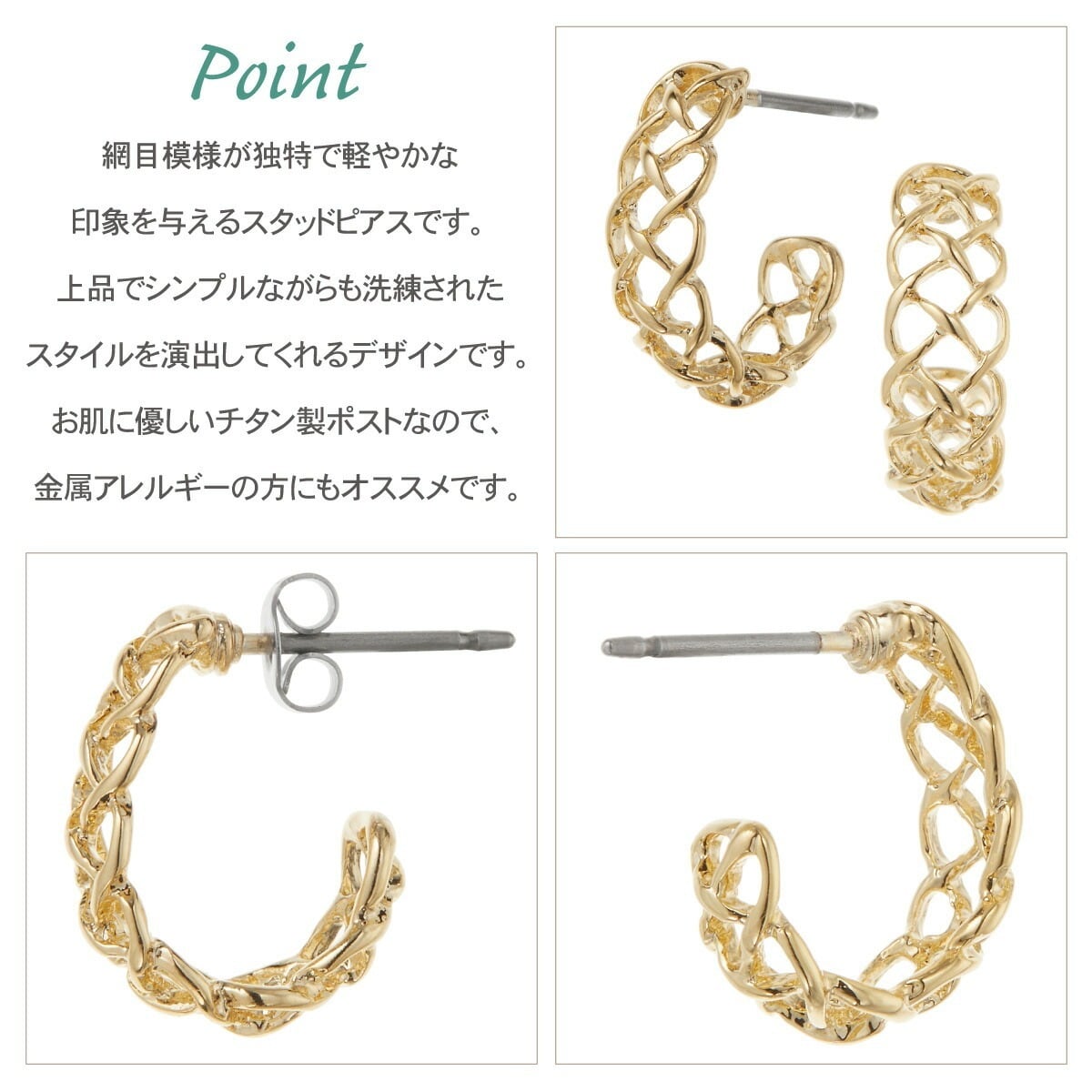 ピアス レディース チタン製ポスト 両耳用 日本製 網目 模様 ハーフフープ ドロップ型 しずく型 抜け感 幅広 ワイド ニッケルフリー お肌に優しい 金属アレルギー対応 金アレ 上品 かわいい オシャレ 誕生日 記念日 プレゼント ギフト メール便送料無料
